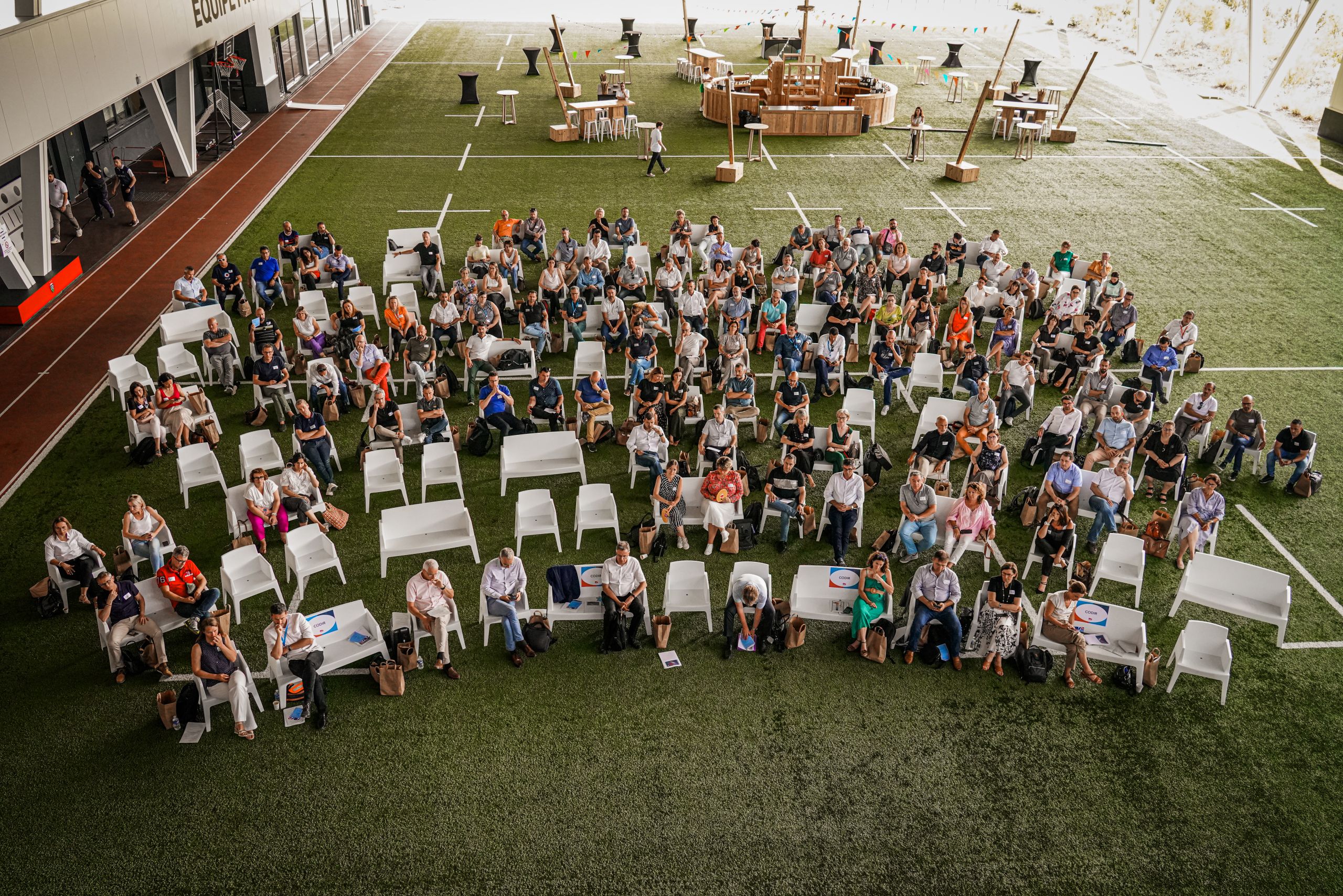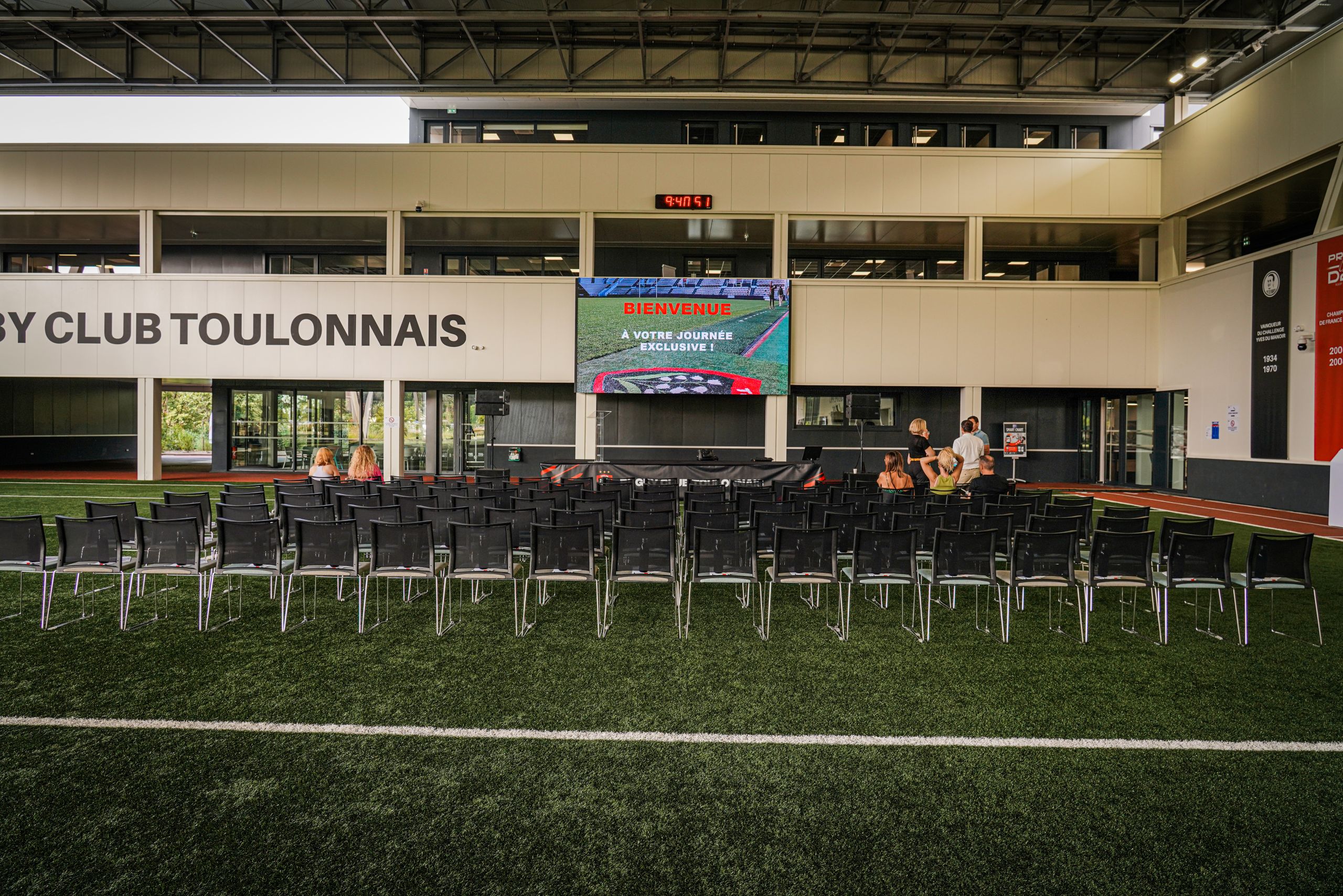 - Accès sur la terrasse extérieure selon les salles : vue imprenable sur le terrain d’entraînement
