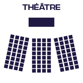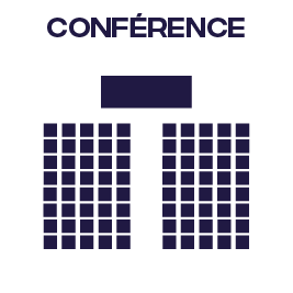 Configurations possibles : U, conférence, classe, théâtre, banquet, cocktail